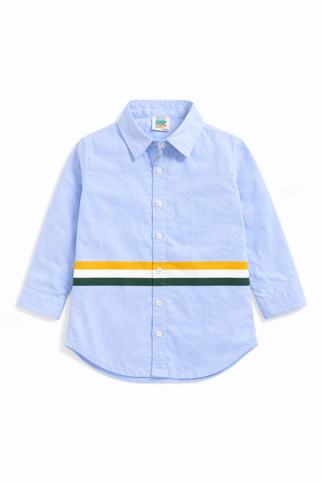 Girls Light Blue Cotton Shirt With Yellow and Navy Stripe Crafted from premium cotton, this girls' shirt combines comfort with contemporary style. The light blue base provides a versatile foundation, while the yellow and navy stripes add visual interest and dimension. The breathable fabric ensures all-day wearability, making it ideal for school, casual outings, or layering. The classic striped pattern pairs effortlessly with jeans, skirts, or trousers, offering endless styling possibilities for a young wardrobe.